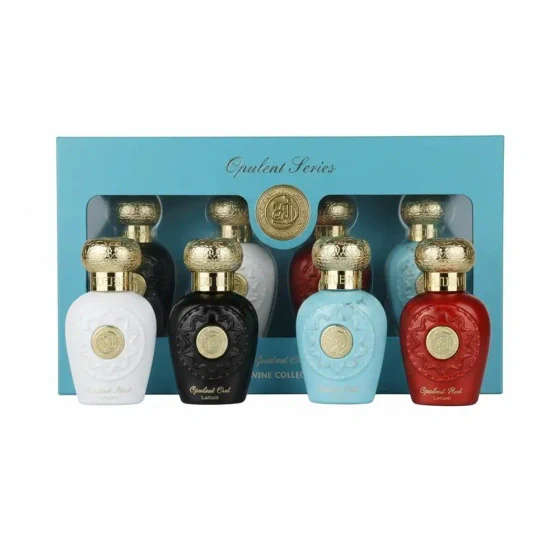 Das Set enthält die vier Düfte Opulent Dubai, Opulent Oud, Opulent Musk und Opulent Red, die jeweils ihren eigenen Charakter besitzen. Die Palette reicht dabei von fruchtig-zitrischen und floralen Noten bis zu warmen Amber-, Oud- und Moschusakkorden. Dadurch entsteht ein vielseitiges Dufterlebnis für verschiedene Anlässe und Stimmungen.